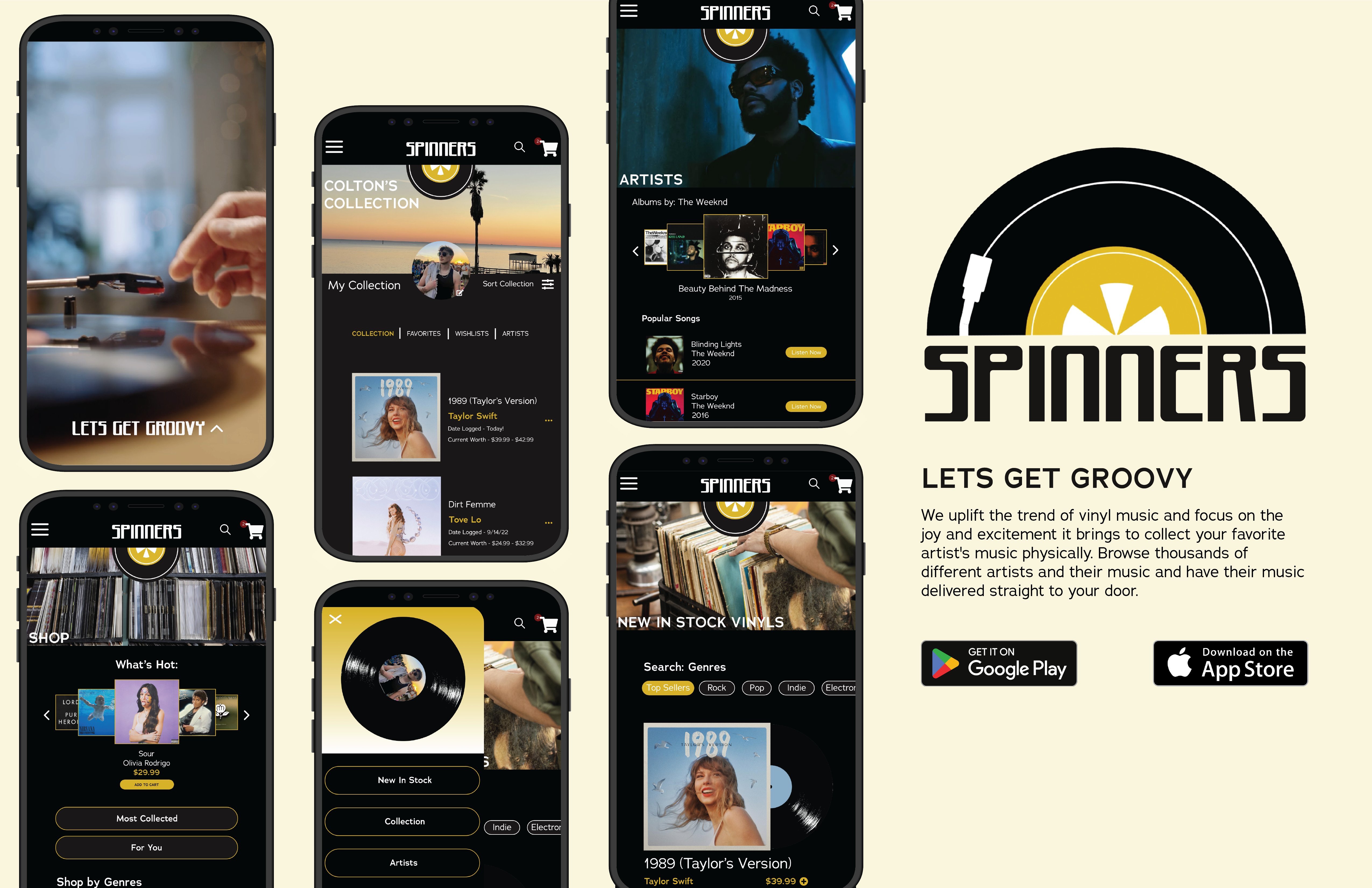 Spinners is a trendy and innovative record store brand that specializes in providing vinyl records and other music merchandise. In recent years, there has been an elevated trend of music being played by vinyl and Spinners is here to uplift that experience.