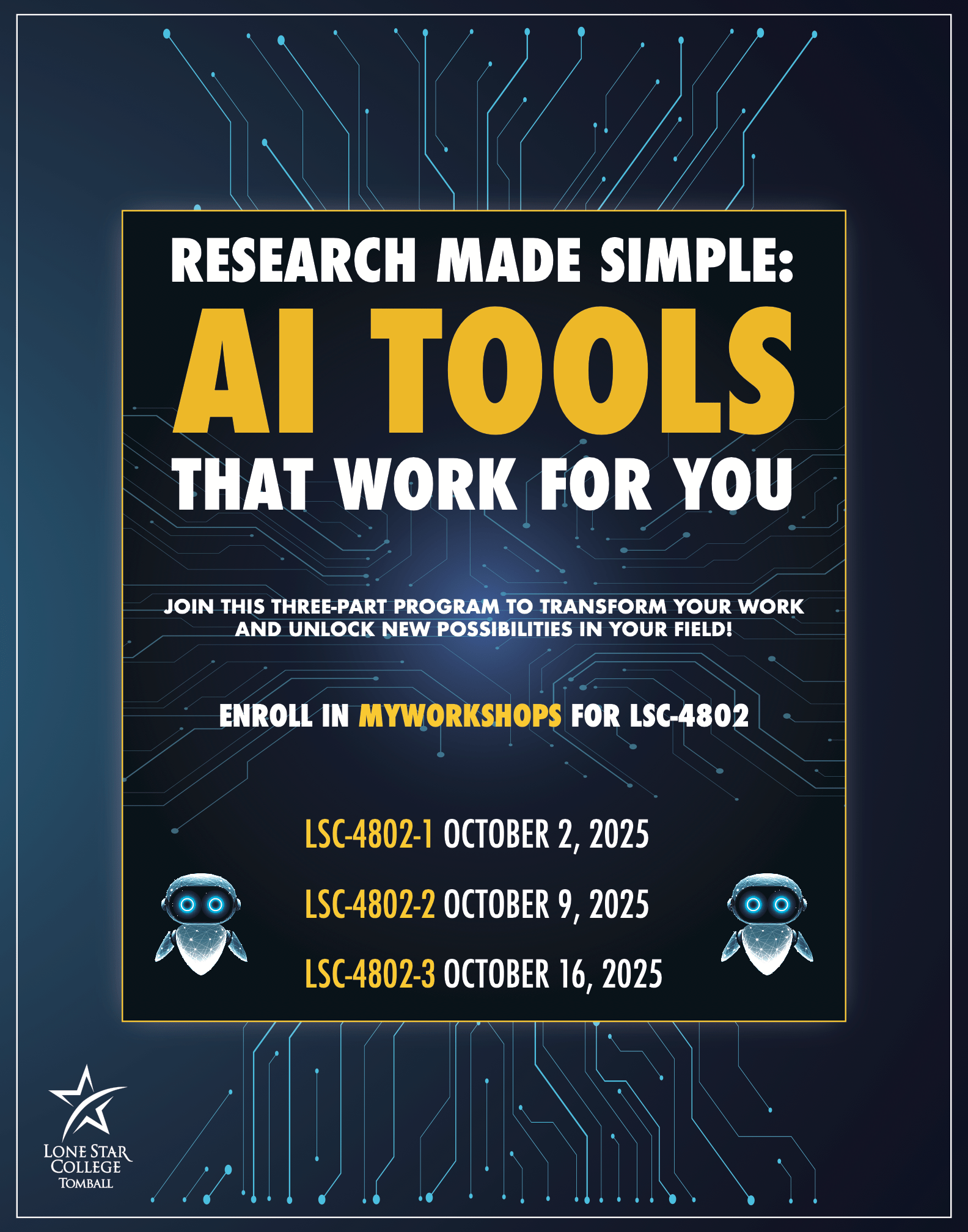 As one of the in-house graphic designers for Lone Star-Tomball College, I create a wide range of posters, logos, and videos that promote events and programs across the campus. Each project requires me to adapt my design approach to match the unique goals and audiences of my clients. My role is to translate ideas into visually compelling designs that not only capture attention but also communicate key information clearly and effectively.